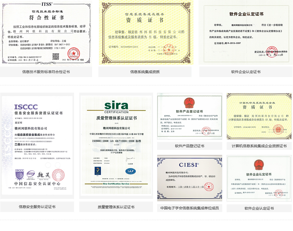 公司通過了ISO 9001質(zhì)量體系認證,是經(jīng)認定的國家軟件企業(yè)、國家高新技術(shù)企業(yè),是中國電子學會信息系統(tǒng)集成分會產(chǎn)、學、研合作成員單位。